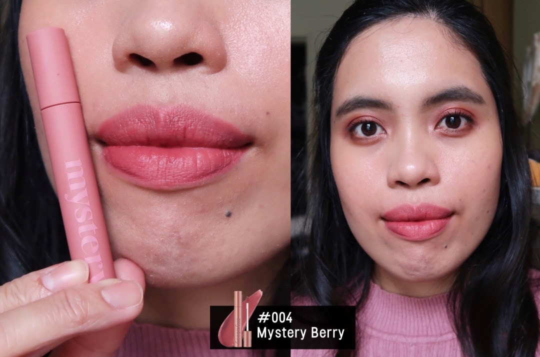 001 Mystery Apple: a marsala red that redefines the color and matches everything. This is a pretty shade of red that is not too bright nor too dark. It is a red tone that does not look too mature on me because I feel like when I wear red, I look much older but with this, it looks more youthful and playful almost. This reminds me of the Red Velvet shade from Mamonde Color Lip Balm Intense.I'M Mystery Blur Tint was carefully designed by a professional colorist in 5 ultra-pigmented matte MLBB colors. This lip tint delivers intense color in a comfortable, creamy, soft, velvet, and matte formula. The diamond-shaped cushion tip applicator provides precision application in one stroke.